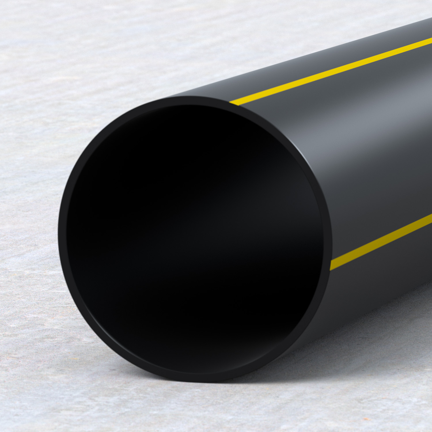 Трубы ПНД производятся из высококачественного полиэтилена в черном цвете и с маркировкой в виде полосы желтого цвета. Нормы изготовления этих труб строго регулируются ГОСТ Р 58121.2-2018 «Пластмассовые трубопроводы для транспортирования газообразного топлива» соответствует классу ПЭ-100.